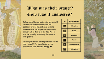 It’s up to you to tell the story of the Dead Pope’s miracles. You’ll relate the tale of the petitioner, praying for the Pope’s intercession, and you’ll tell us what the petitioner recieved. The New Pope will hear your stories and decide whether the miracle is genuine.