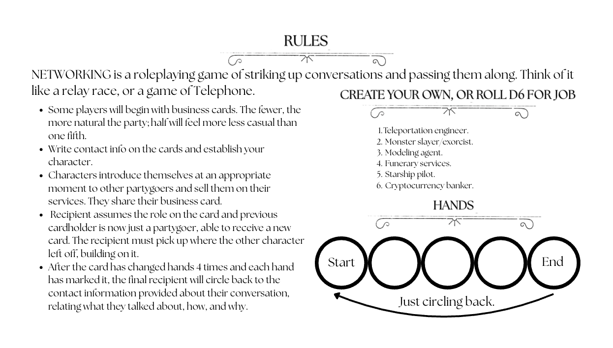 Meet people and make valuable business connections with potential clients. Monetize your relationships. Sell yourself. Grind. Build. Have fun, too.